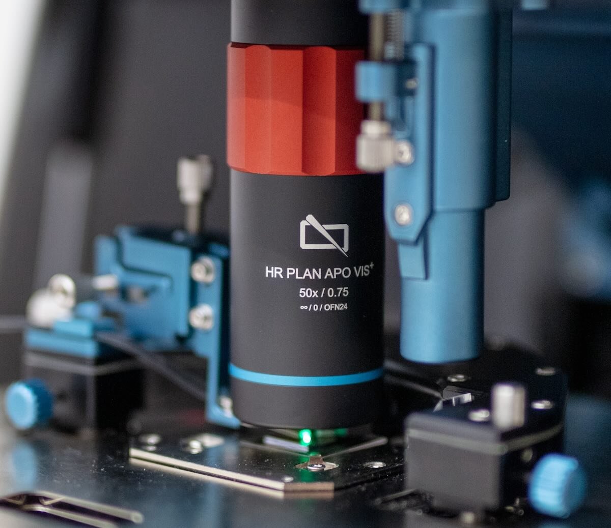 NV customized optics compatible with multiple laser colors. Additional side view imaging for precise positioning of the antenna and the tip on the sample