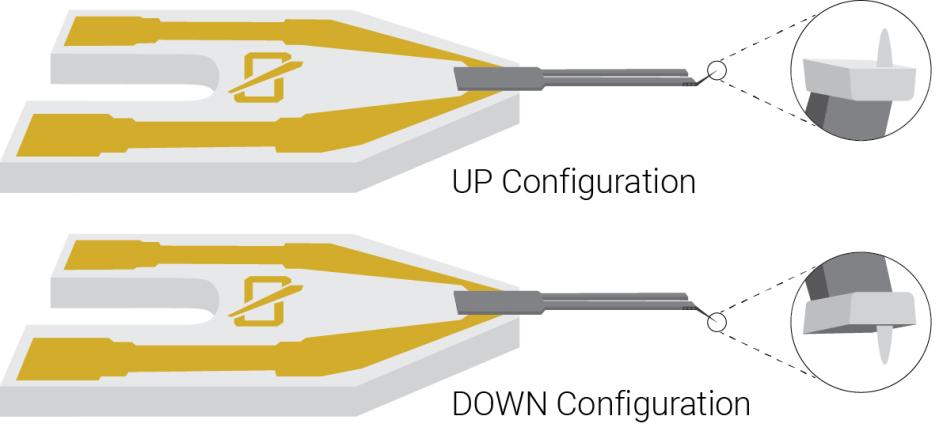 We offer two standard configurations of tip versus PCB orientation. We call them UP and DOWN. Choose the one that fits your experimental setup before ordering.
